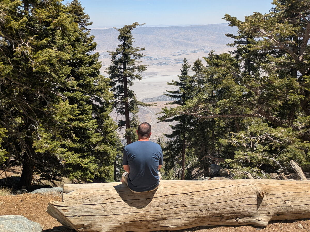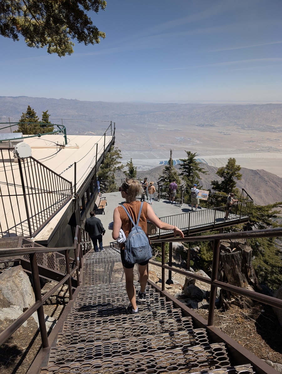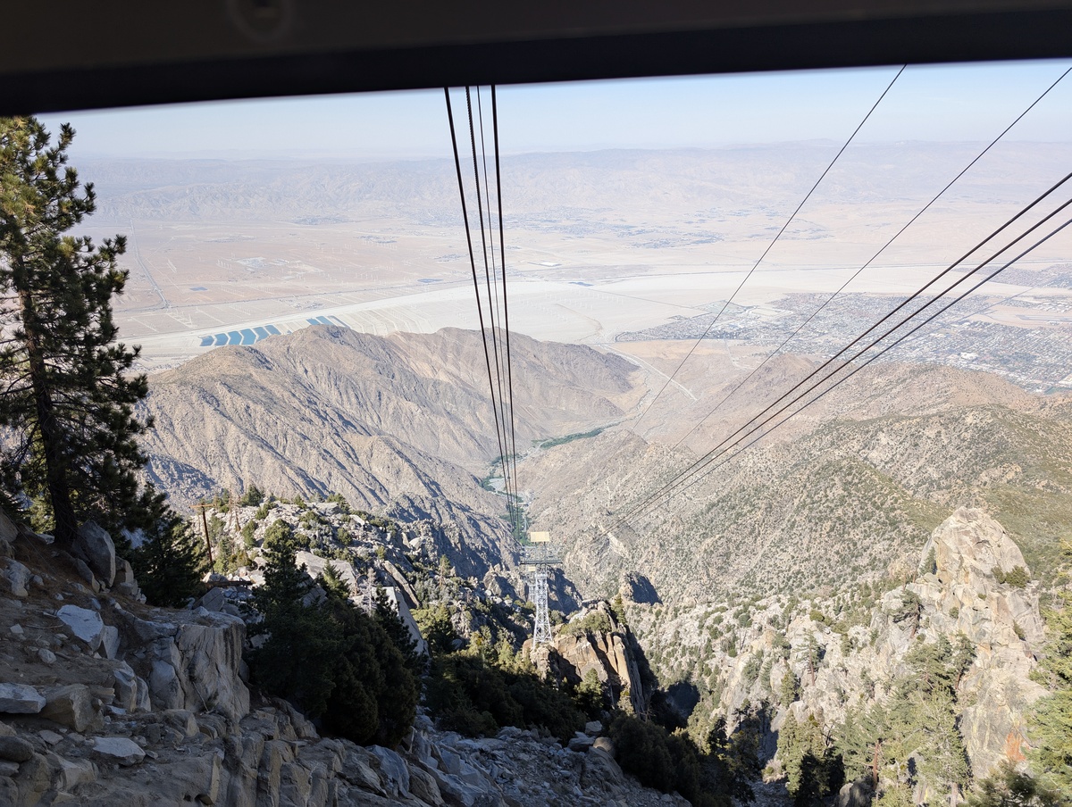 Wow, what a vacation so far!! Only a few days left but we still had a big adventure planned.. San Jacinto Mountain. Andrea had brought this place up multiple times to me so it peaked my interest. “Now we will have to ride the air tram to get to the top” she said. Ok I think I can handle that but boy I didn’t realize that we would go from 2600 feet elevation to over 9000 at the top.. WHAT?!? Wait, it also rotates 360 degrees as it goes up and down. WHO thought this up?! All joking aside, this was amazing day. The pictures or these words cannot describe how amazing it was to ride to the top and then hike around the mountain. One of the biggest kicks for me.. everyone was smelling the tress and Cindy told me to do so.. I had to fit in, so I smelled the trees…