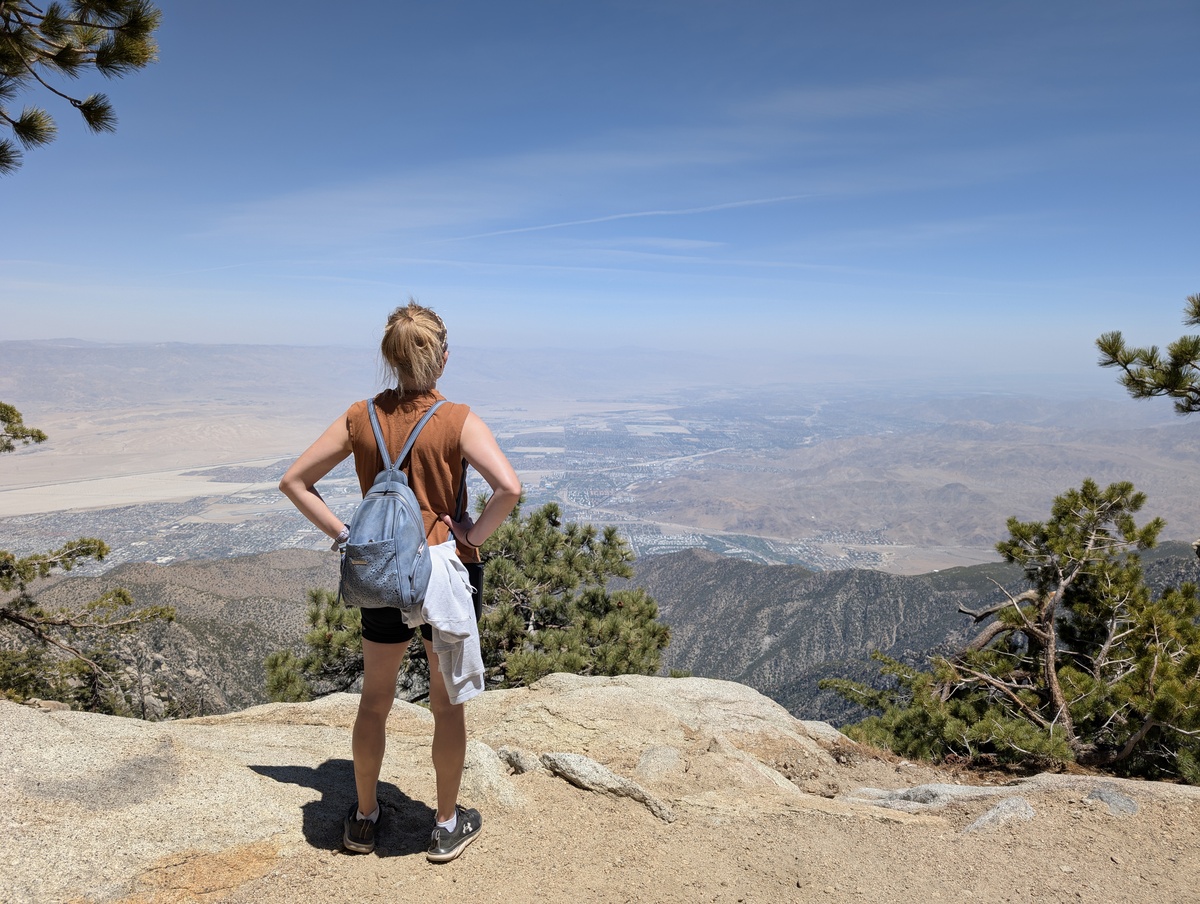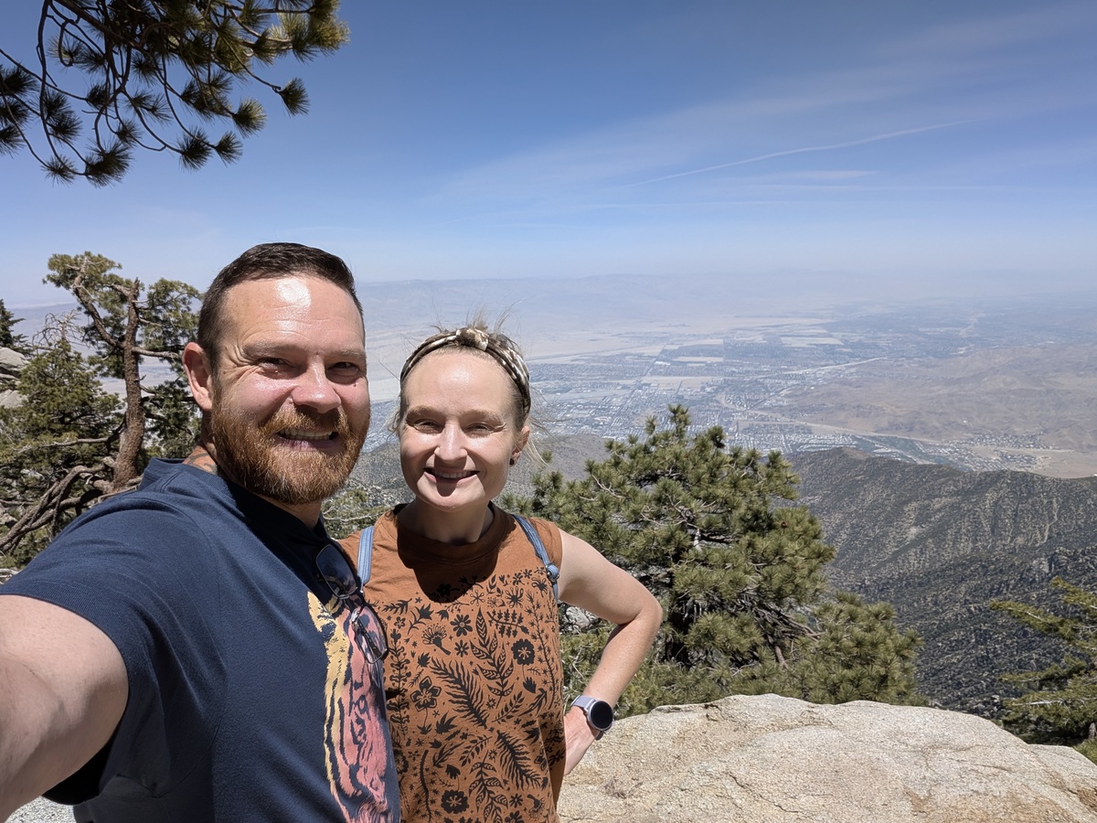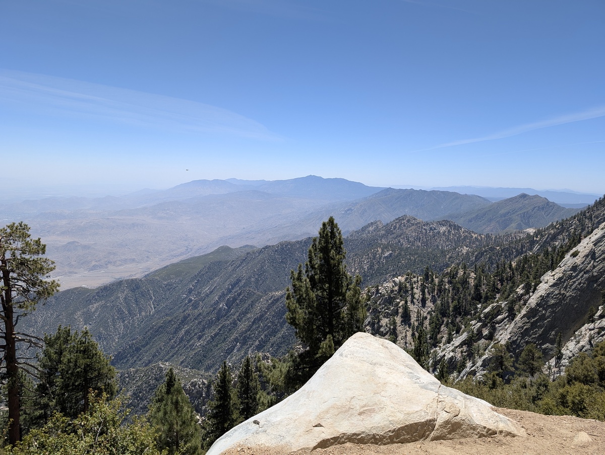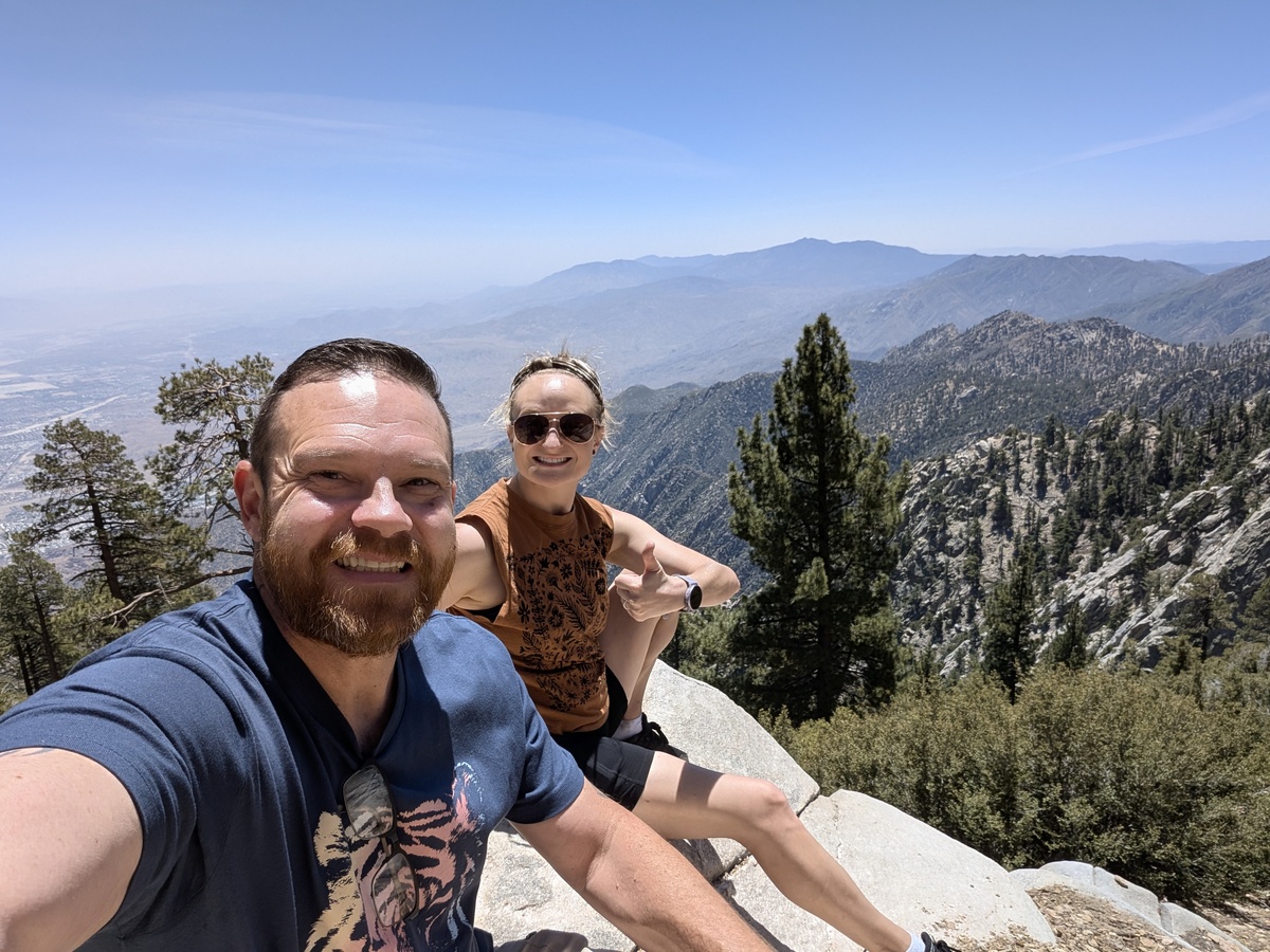 Wow, what a vacation so far!! Only a few days left but we still had a big adventure planned.. San Jacinto Mountain. Andrea had brought this place up multiple times to me so it peaked my interest. “Now we will have to ride the air tram to get to the top” she said. Ok I think I can handle that but boy I didn’t realize that we would go from 2600 feet elevation to over 9000 at the top.. WHAT?!? Wait, it also rotates 360 degrees as it goes up and down. WHO thought this up?! All joking aside, this was amazing day. The pictures or these words cannot describe how amazing it was to ride to the top and then hike around the mountain. One of the biggest kicks for me.. everyone was smelling the tress and Cindy told me to do so.. I had to fit in, so I smelled the trees…
