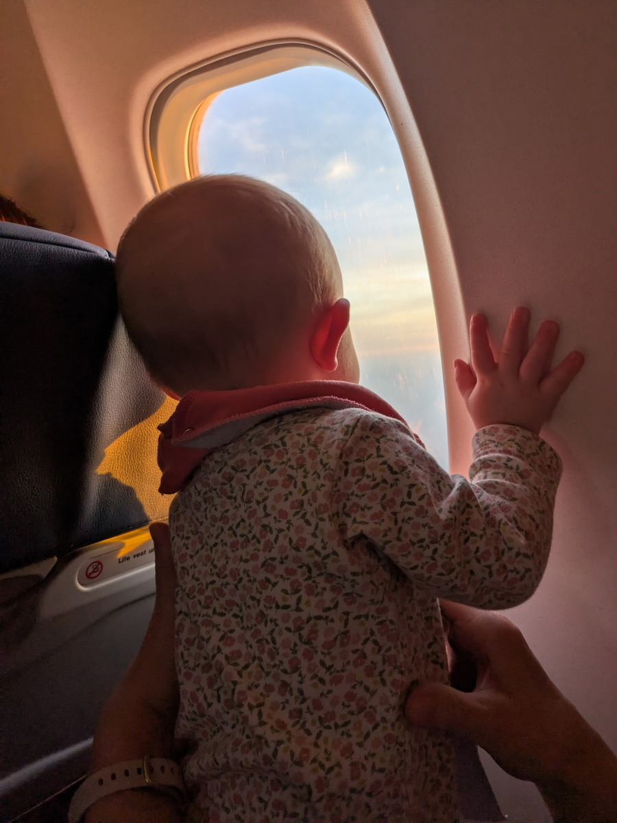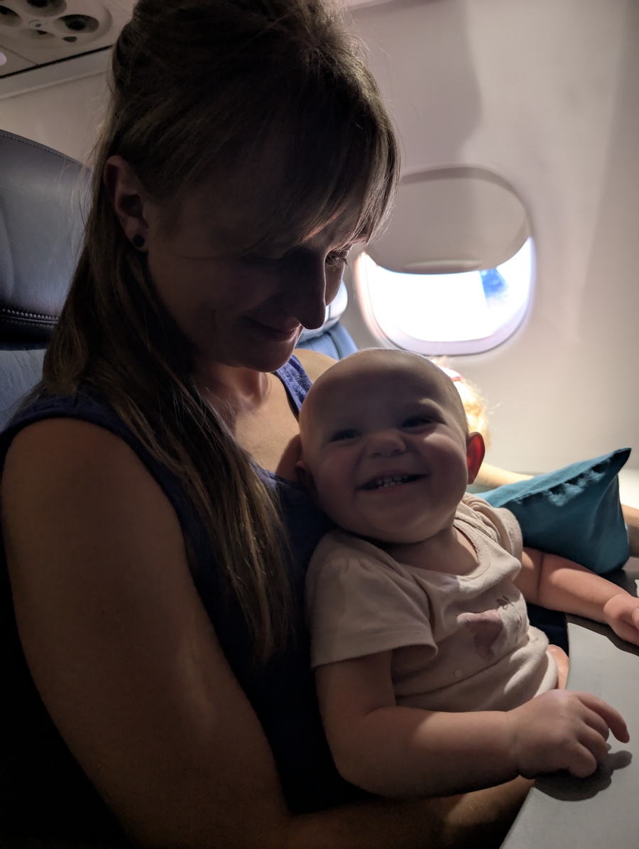 May 17th we arrived at the Tri-Cities airport a little early to make sure that we didn’t encounter any problems. This would be the first time that we have flown with the girls so we were trying to expect the uexpected. Bags, stroller and car seats checked in without any hiccups so on to security. Ah, no issues.. I can feel a little stress lifted. After a little over an hour of waiting it was time to board and the first troublesome moment of the trip. Akira was set to sit in one of the adults laps and because of the seating arrangements, they had to make some changes, which almost put the entire flight behind schedule.